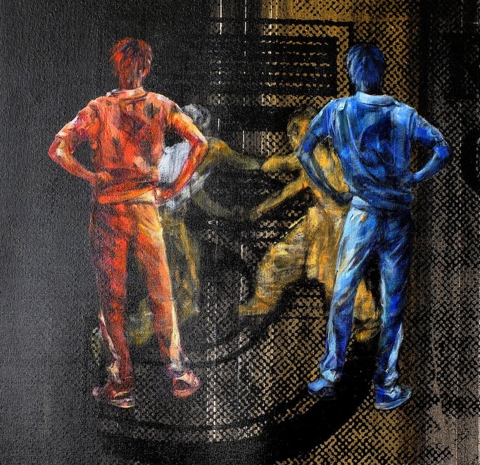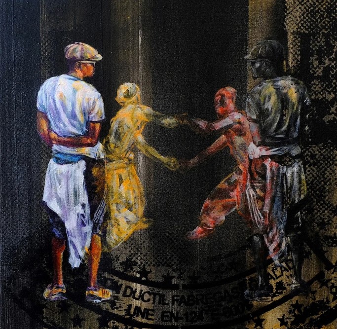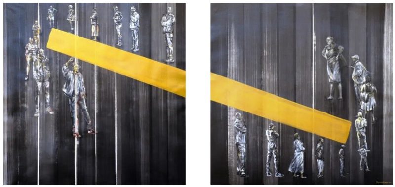 Ses œuvres en deux dimensions explorent la figure humaine en tant qu’individu et en tant que membre d’une communauté, en se concentrant sur les questions d’identité et d’appartenance : les espaces que nous occupons, les informations que nous recevons et partageons, les personnes avec lesquelles nous nous associons, notre réaction aux changements qui nous entourent, qu’ils soient provoqués par l’homme ou par des causes naturelles.