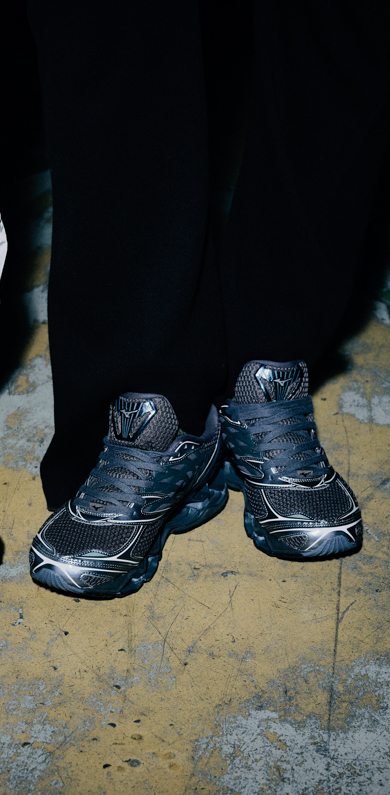 Cette collection ré-imagine deux silhouettes emblématiques du style sportif de Mizuno : la Wave Prophecy LS et la Wave Rider 10.