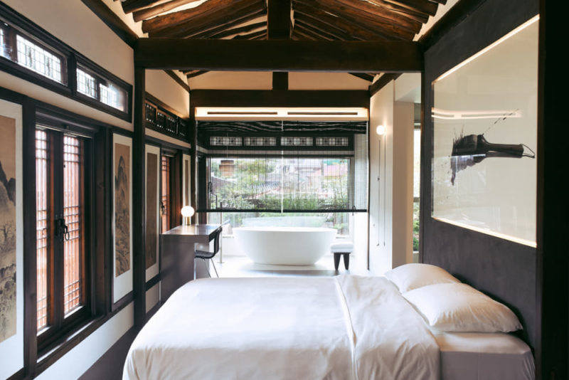 Nostalgia, ce n’est pas un hôtel parmi d’autres : c’est une collection de hanoks – ces maisons traditionnelles coréennes – restaurées, embellies, habitées avec respect. Chaque Jae propose une variation sur le thème de la sérénité.