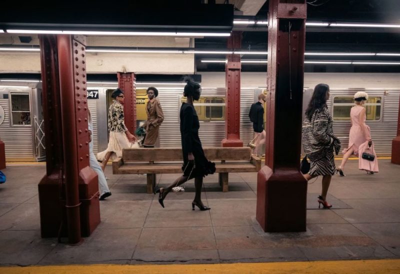 Broadway était tout proche, et il y avait une théâtralité distincte, une irréalité dans cette présentation apparente de la réalité. Oui, nous étions sur un vrai quai de métro, et c’était un vrai train, mais le résultat ressemblait un peu à un croisement entre une reprise de The Women de George Cukor et un épisode particulièrement frénétique de Sex And The City.