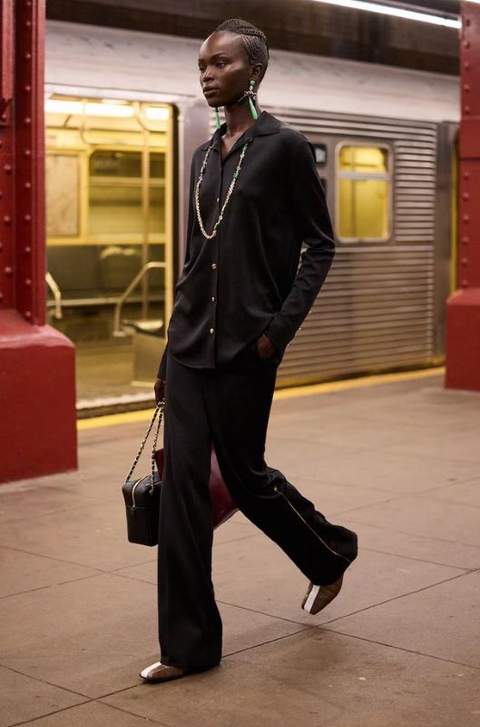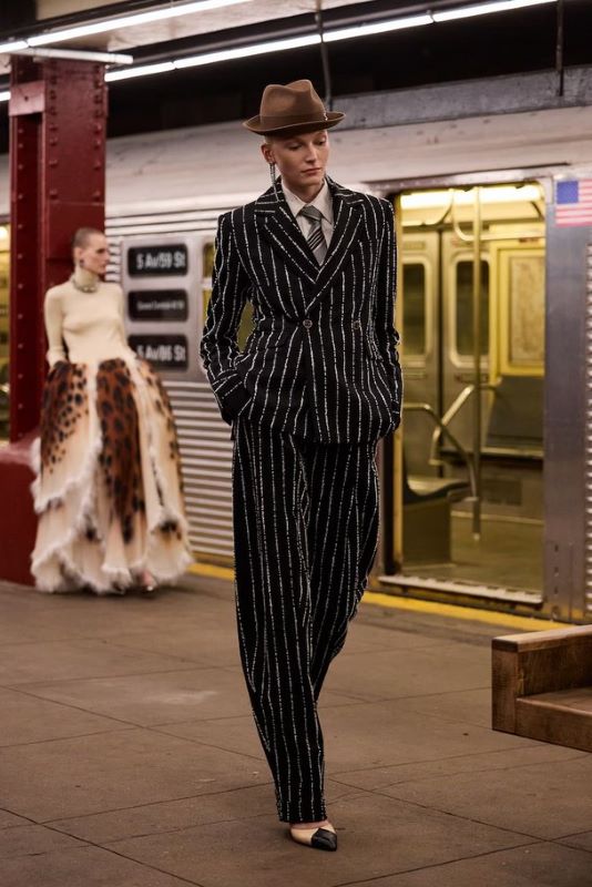 Mais sa vision audacieuse et expansive, ainsi que ses vêtements vraiment excellents, sont non seulement à la hauteur de l’héritage impressionnant de la maison, mais la propulsent vers de nouveaux sommets. Avec des mannequins campant et prenant la pose avec un journal Chanel Gazette spécialement imprimé, passant de faux coups de fil et entrant et sortant des wagons de métro à l’arrêt, ce défilé était également un retour à la tradition enivrante des productions théâtrales de Chanel sous l’ancien directeur artistique Karl Lagerfeld, de fantastiques voyages à travers des espaces et des lieux.