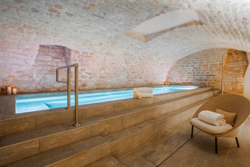 Le petit plus pour les amoureux : L’hôtel dispose d’un espace détente avec piscine intérieure voûtée, jets hydromassants et tisanerie – idéal pour se ressourcer après une journée à Paris.
