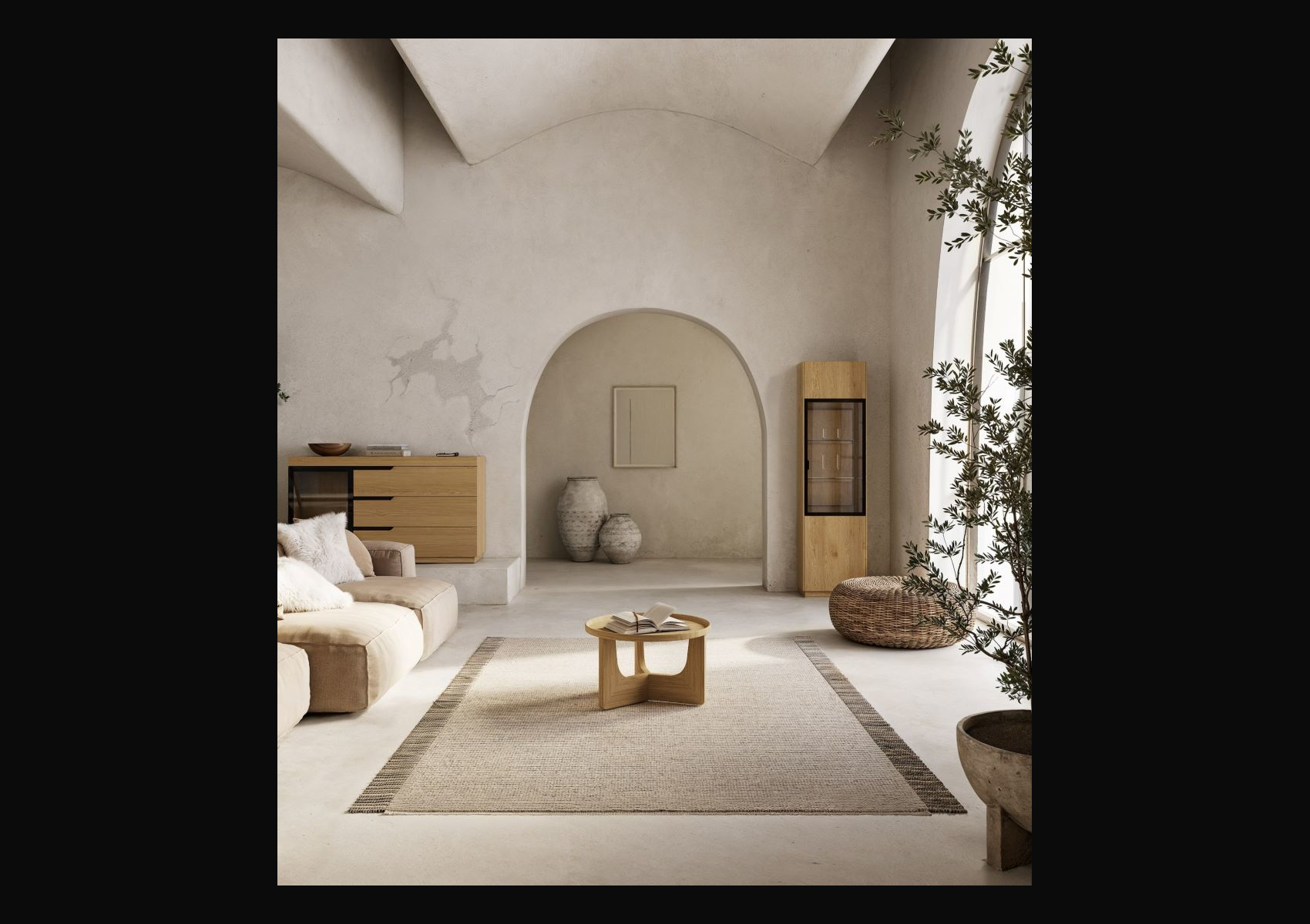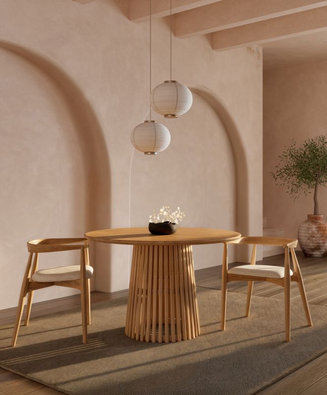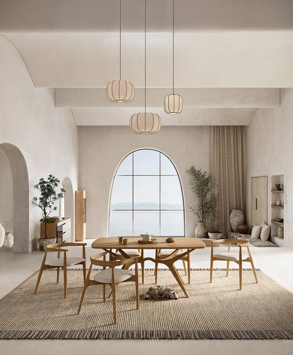 Le style Kimnata se reconnaît immédiatement. Lignes pures, géométries apaisées, palettes sourdes, matières nobles subtilement texturées : chêne massif, lin huilé, métal noir, marbre brut… Chaque pièce semble habitée par une forme de retenue élégante, un luxe discret qui laisse place à la contemplation.
