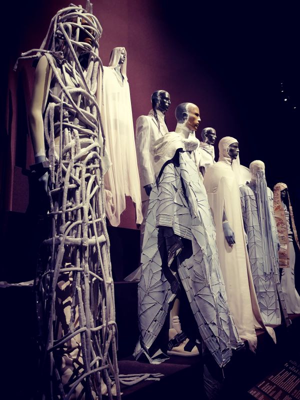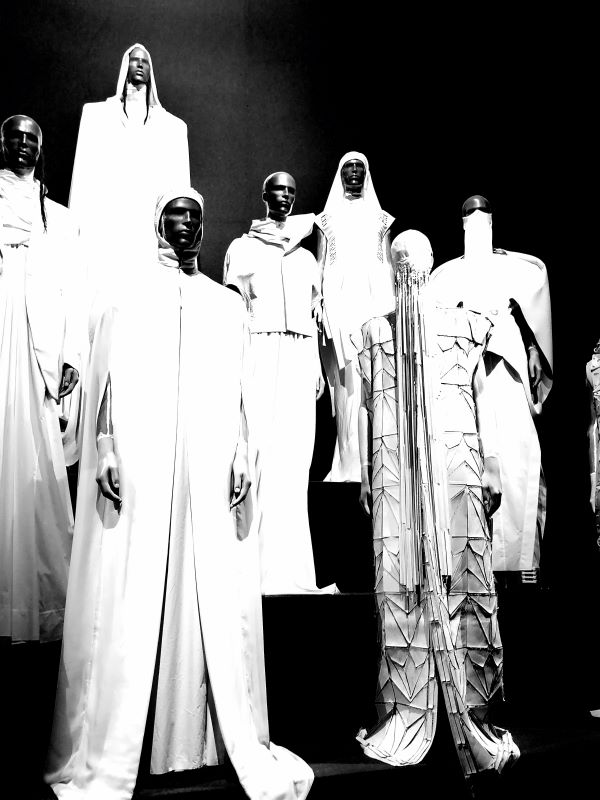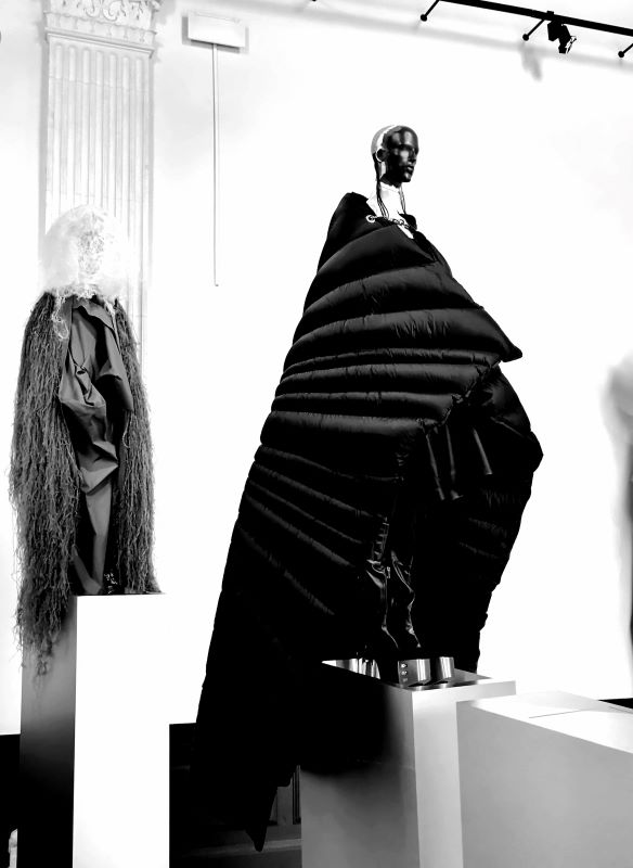 Au cœur de l’exposition, une reconstitution fidèle de la chambre californienne de Rick Owens et Michèle Lamy, sa muse et épouse, souligne le lien profond entre vie privée et œuvre artistique. Ce geste narratif se double d’un regard augmenté sur les influences d’Owens : œuvres de Gustave Moreau, Joseph Beuys et Steven Parrino jalonnent le parcours, mettant en lumière ses sources d’inspiration plurielles.