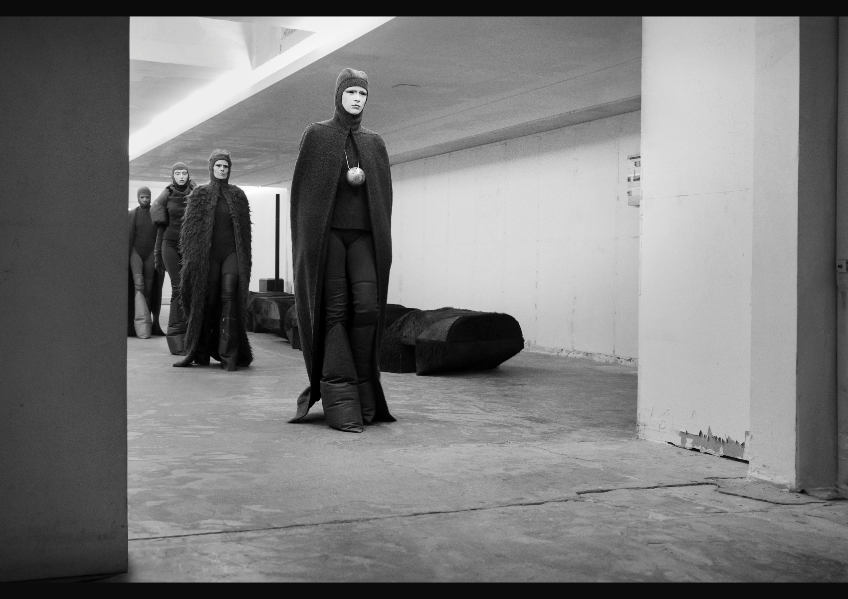 Rapidement remarqué pour ses silhouettes glunge – mélange de glamour et de grunge –, Rick Owens impose une esthétique sombre, minérale et brute. Vestes en cuir vieilli, drapés asymétriques, volumes oversize et palette noire/grise font désormais sa signature. Il intègre dans ses codes des références gothiques, post‑apocalyptiques et futuristes, avec une dimension architecturale et performative forte.