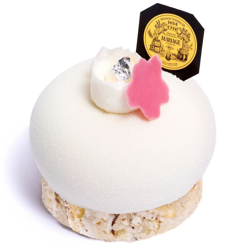 Notre conseil・Déguster ce thé d’exception avec un gâteau de mousse de lait au cœur fleuri infusée de thé vert Sakura, Sakura !, sur son croquant de dragées blanches: le Sakura Blossom. Une pure merveille !