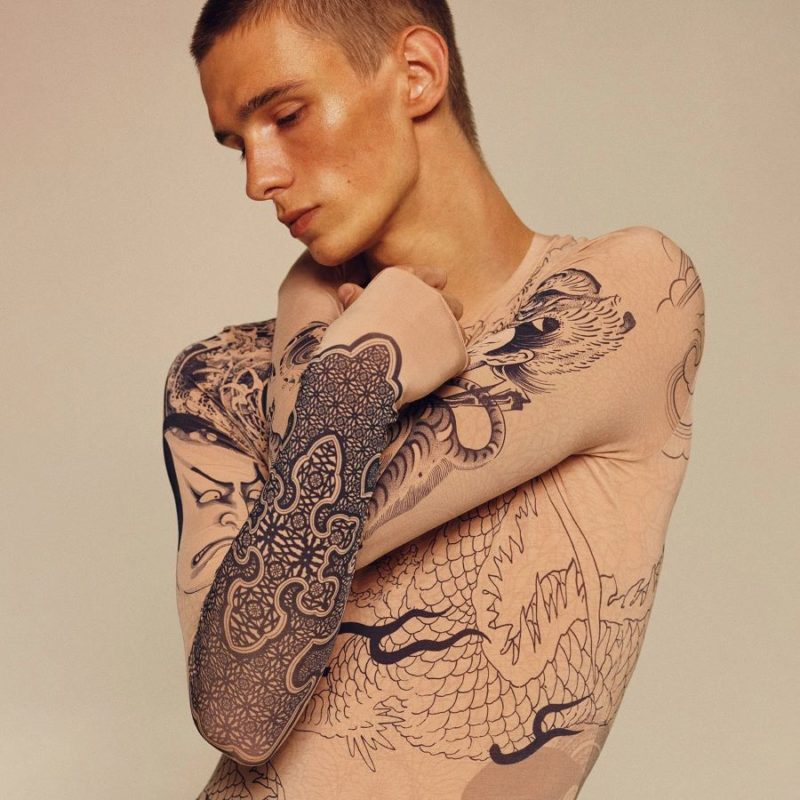 En collaboration avec des tatoueurs et des artistes renommés, la marque crée méticuleusement des motifs qui imitent la beauté complexe des tatouages, transformant les vêtements en chefs-d’œuvre portables.